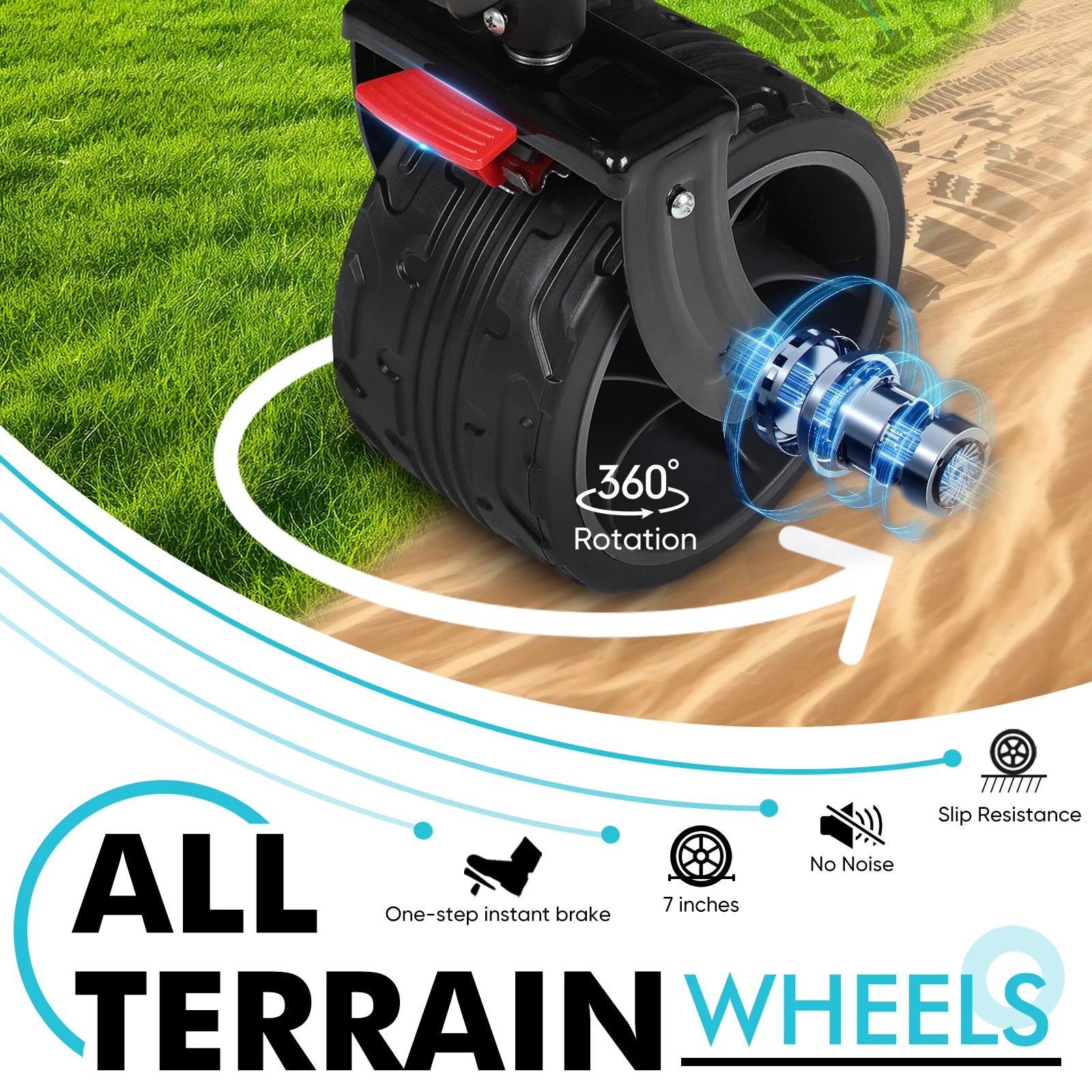 - 【ALL-TERRAIN WHEELS】Our all-terrain wheels boast an impressive 7" diameter and wider tread, equipped with bearings to ensure smooth maneuver across mud, grass, rugged terrains, and even sand. Not only that the front wheels come with 2 brakes, allowing you to effortlessly stop even when carrying a full load of 400L.